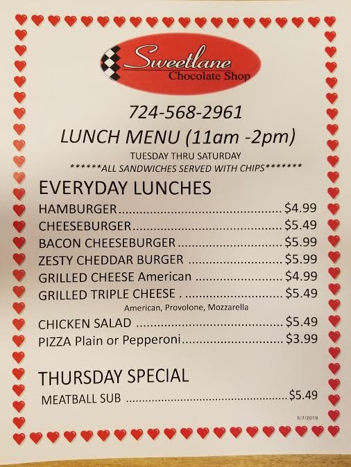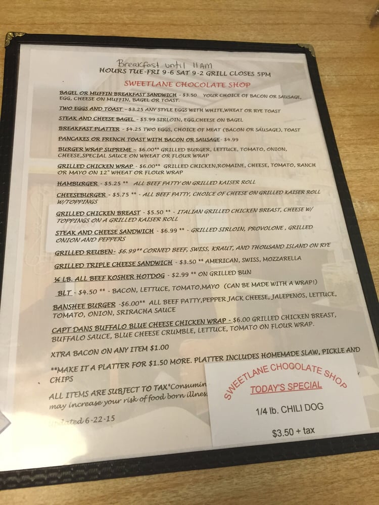 Sweetlane Chocolate Shop Menu